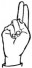 На ћирилици написано ЛЕОНИДА ГОЧАНИН састоји се из 14 слова [?]. Исписано ћириличном једноручном азбуком за глувонеме: